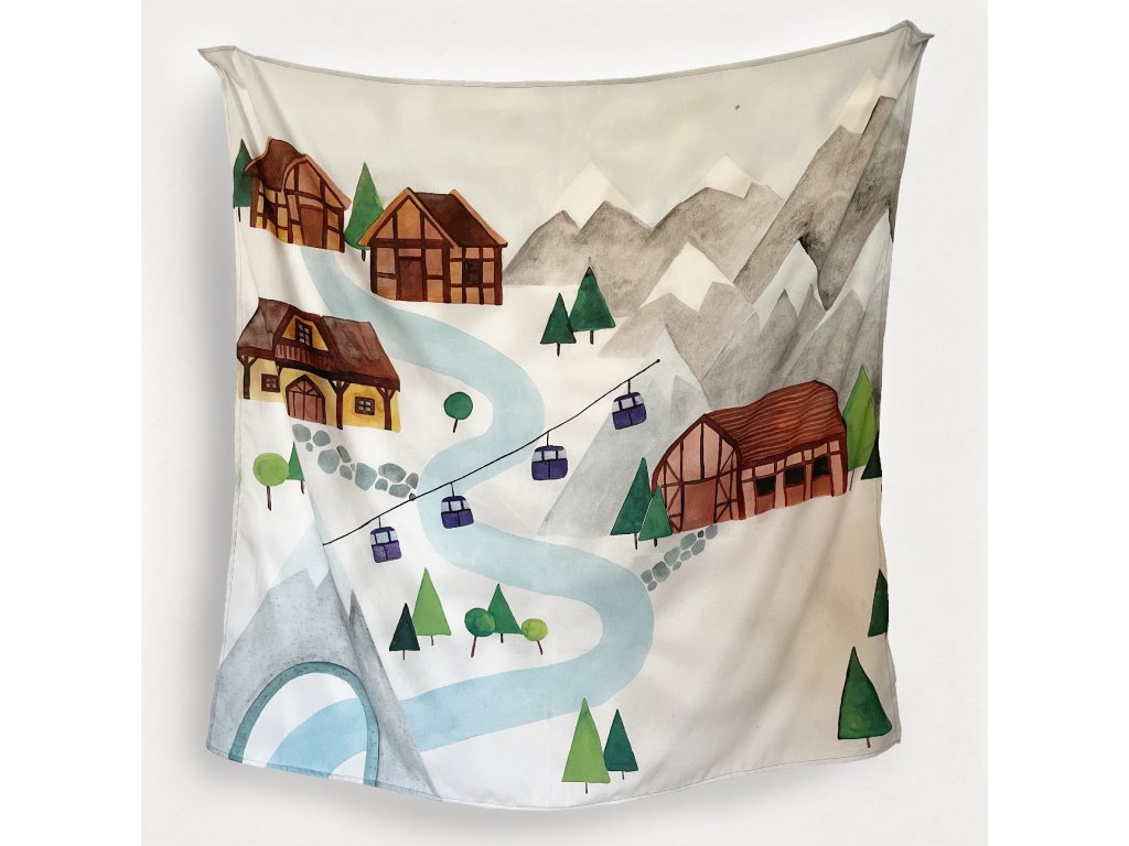 Motív na šatke je autorský originál ručne maľovaný akvarelom a následne tlačený na 100% bavlnenú textíliu. Farby sú následne zafixované do textílie, čo zaručuje ich odolnosť. Potlač je certifikovaná a bezpečná aj pre najmenších.
