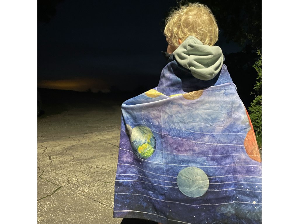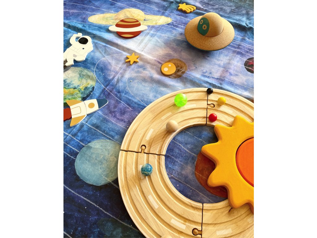 Vesmírna šatka Slnečná sústava je krásnym prvkom k otvorenej hre a zároveň skvelou učebnou pomôckou, pri ktorej sa deti hrou učia o najbližšom okolí našej planéty. Ak máte doma milovníka vesmíru, je pre Vás tým pravým podkladom na vesmírne dobrodružstvá. Mini rozmer 70x70cm je skvelý na menšie sensory play, alebo ako učebná pomôcka