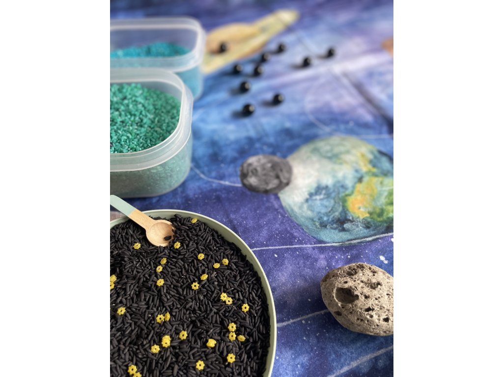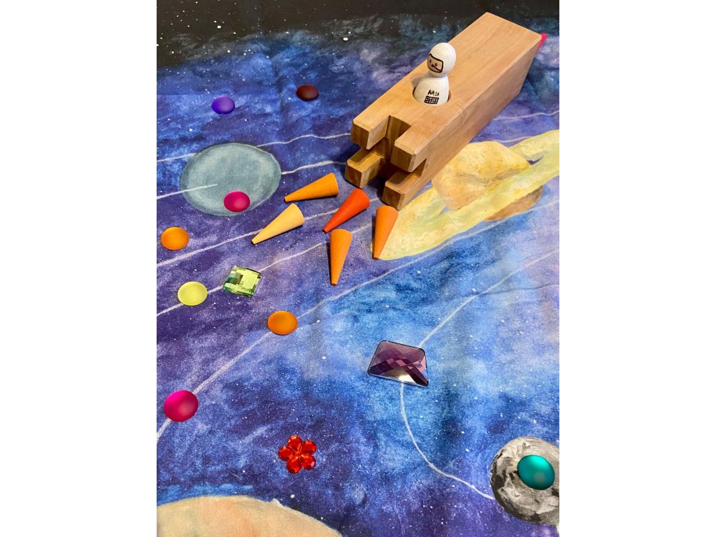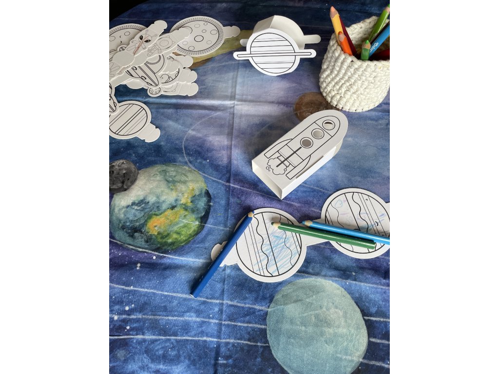 Zo zadnej strany sú v hornej časti našité dve ušká, takže si šatku môžete zavesiť na stenu ako dekoráciu, alebo ju upevniť pri hre ako zavesené pozadie. Nechýba ani štítok s inštrukciami na pranie.
