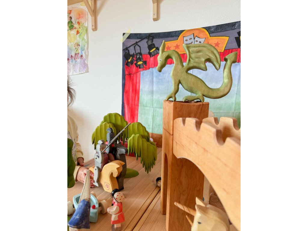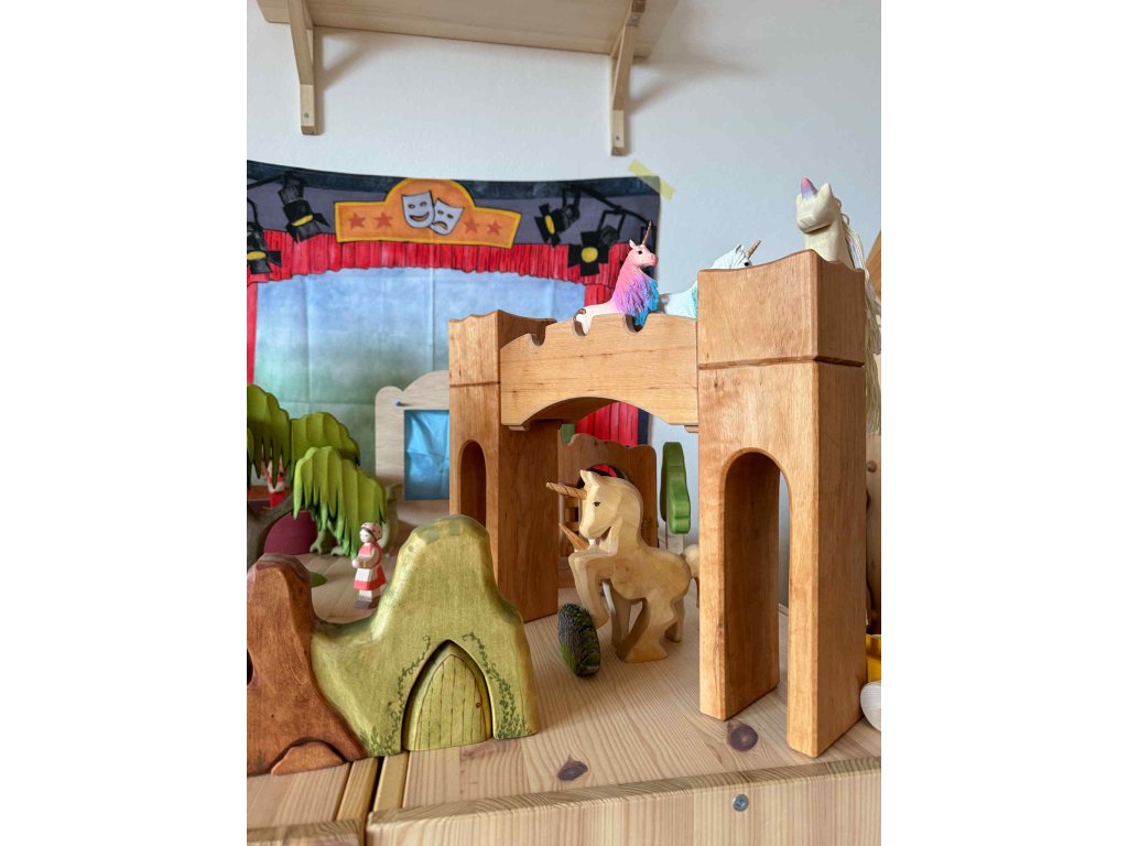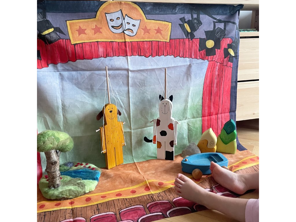Zo zadnej strany sú v hornej časti našité dve ušká, takže si šatku môžete zavesiť na stenu ako dekoráciu, alebo ju upevniť pri hre ako zavesené pozadie. Nechýba ani štítok s inštrukciami na pranie.