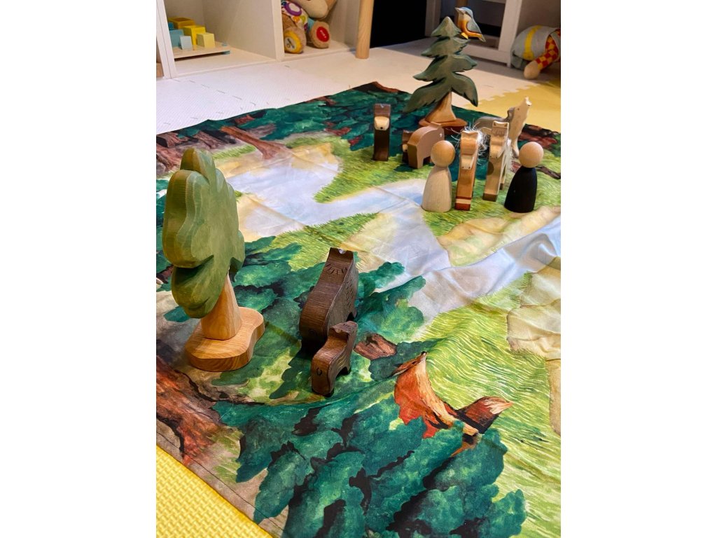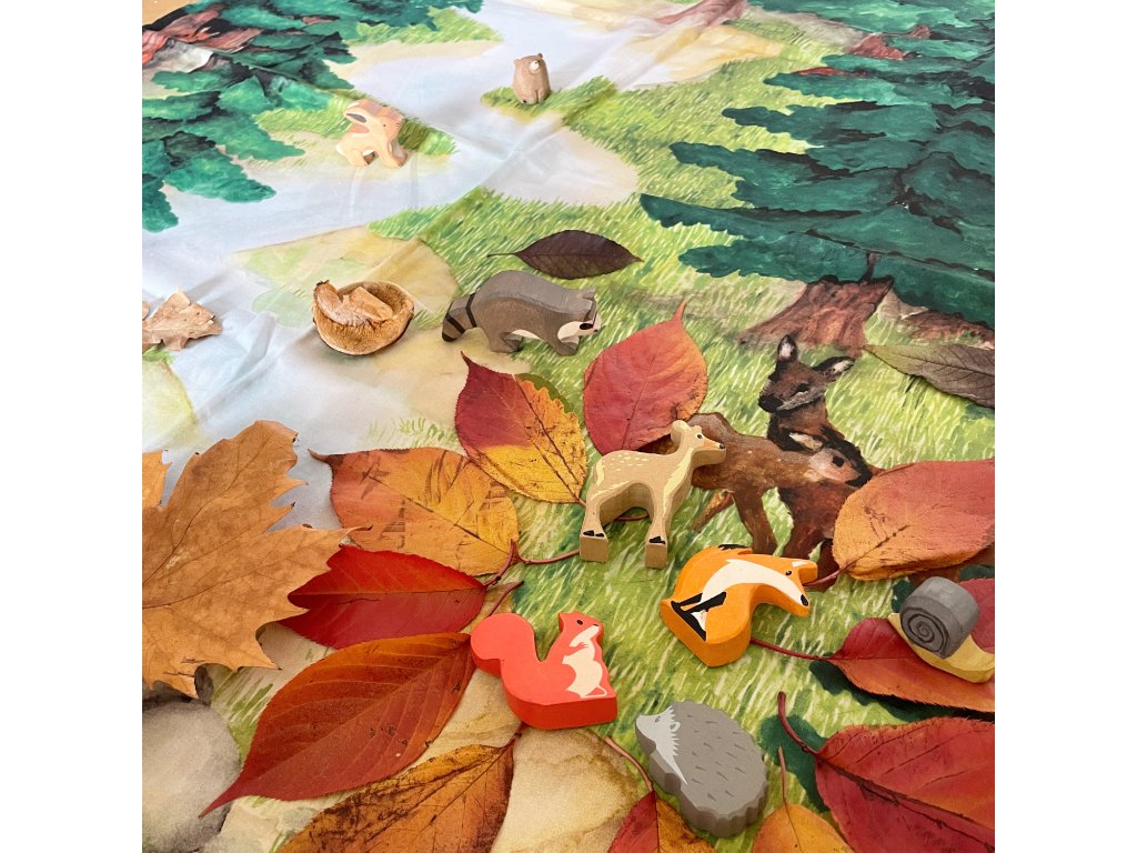 Máte doma milovníka zvieratiek? Šatka v lese je krásny doplnkom k otvorenej hre s lesnými zvieratkami. V momente vytvorí magickú atmosféru lesa a motivuje dieťatko aby sa nechalo unášať svojou fantáziou. Učte sa spoločne o prírode a lesných zvieratkách, alebo ju kombinujte s prírodninami nazbieranými na spoločnej prechádzke. Postavte si v lese malú dedinku, alebo sa zahrajte na rozprávku o červenej čiapočke
