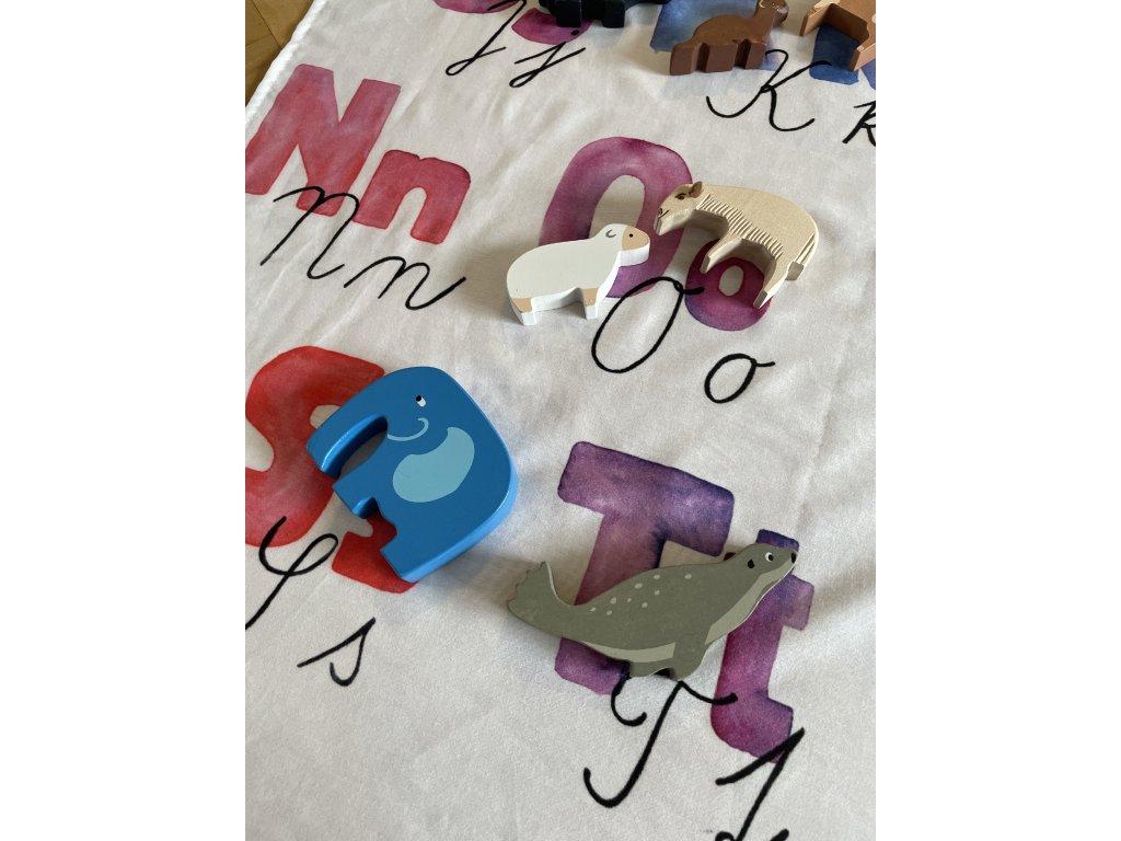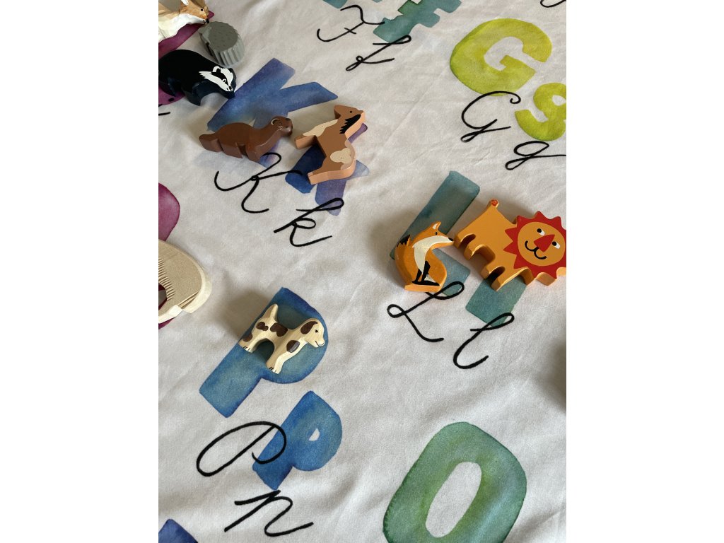 Zo zadnej strany sú v hornej časti našité dve ušká, takže si šatku môžete zavesiť na stenu ako dekoráciu, alebo ju upevniť pri hre ako zavesené pozadie. Nechýba ani štítok s inštrukciami na pranie.