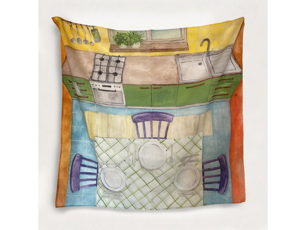 Motív na šatke je autorský originál ručne maľovaný akvarelom a následne tlačený na 100% bavlnenú textíliu. Farby sú následne zafixované do textílie, čo zaručuje ich odolnosť. Potlač je certifikovaná a bezpečná aj pre najmenších.